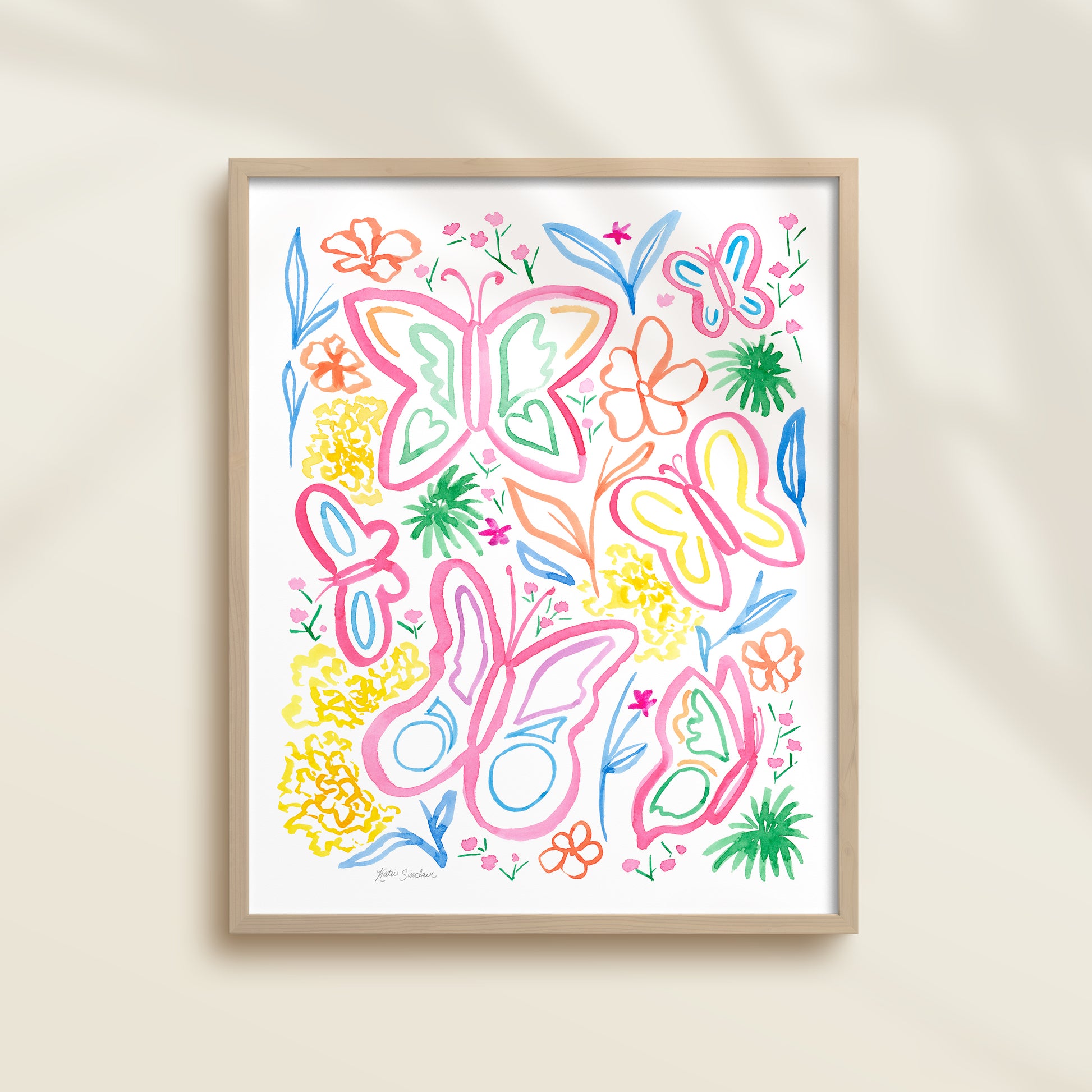 Butterfly Oasis brings delicate watercolor butterflies and vibrant flowers to your child’s room. Archival print on smooth 300gsm paper.