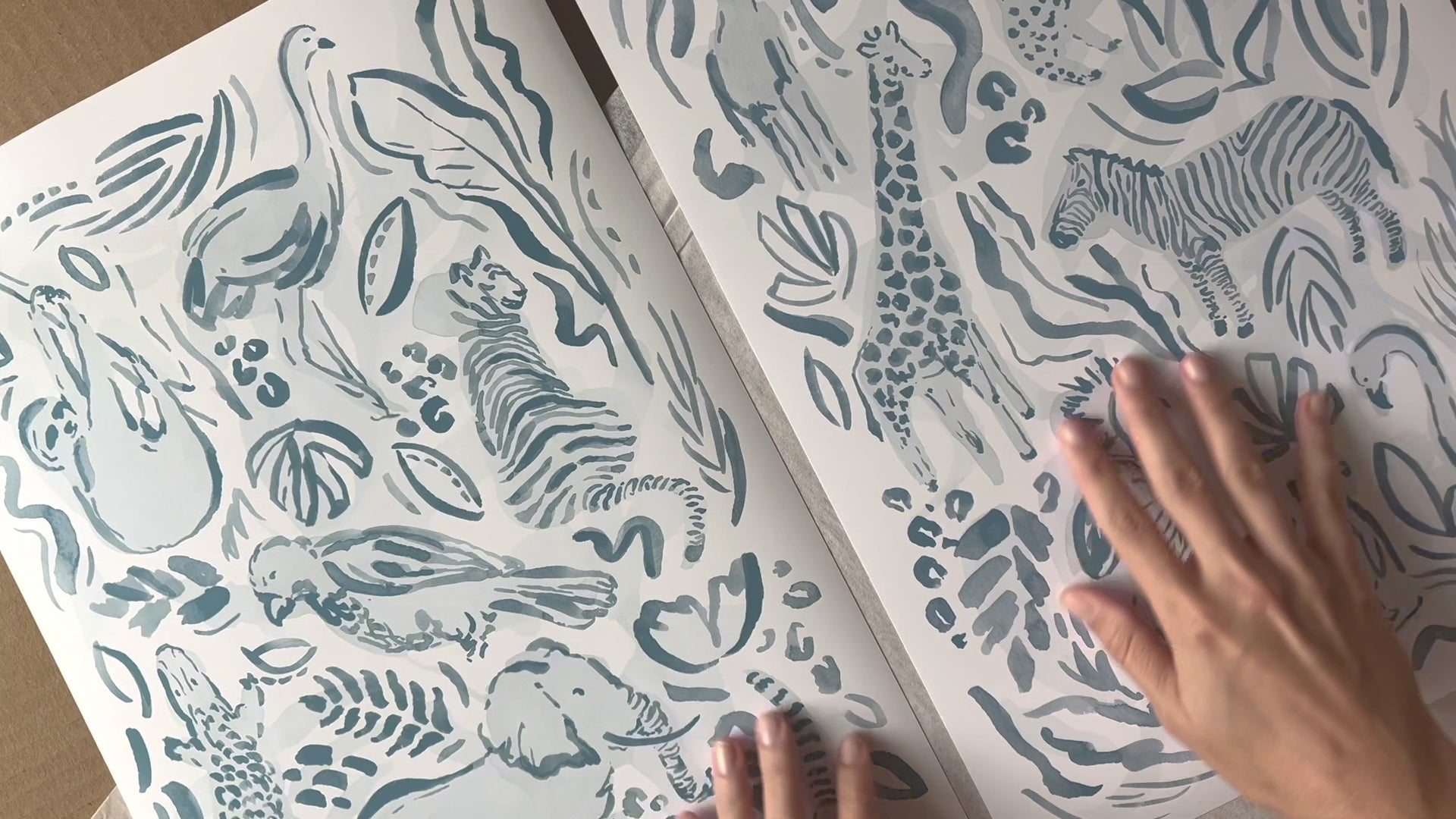 This watercolor safari jungle painting was created for a modern, playful nursery or kids room full of color! Chic, whimsical safari and jungle animals and foliage are featured in this watercolor art print series that is at home in a nursery as it is in a playroom, office, or kid's bath.